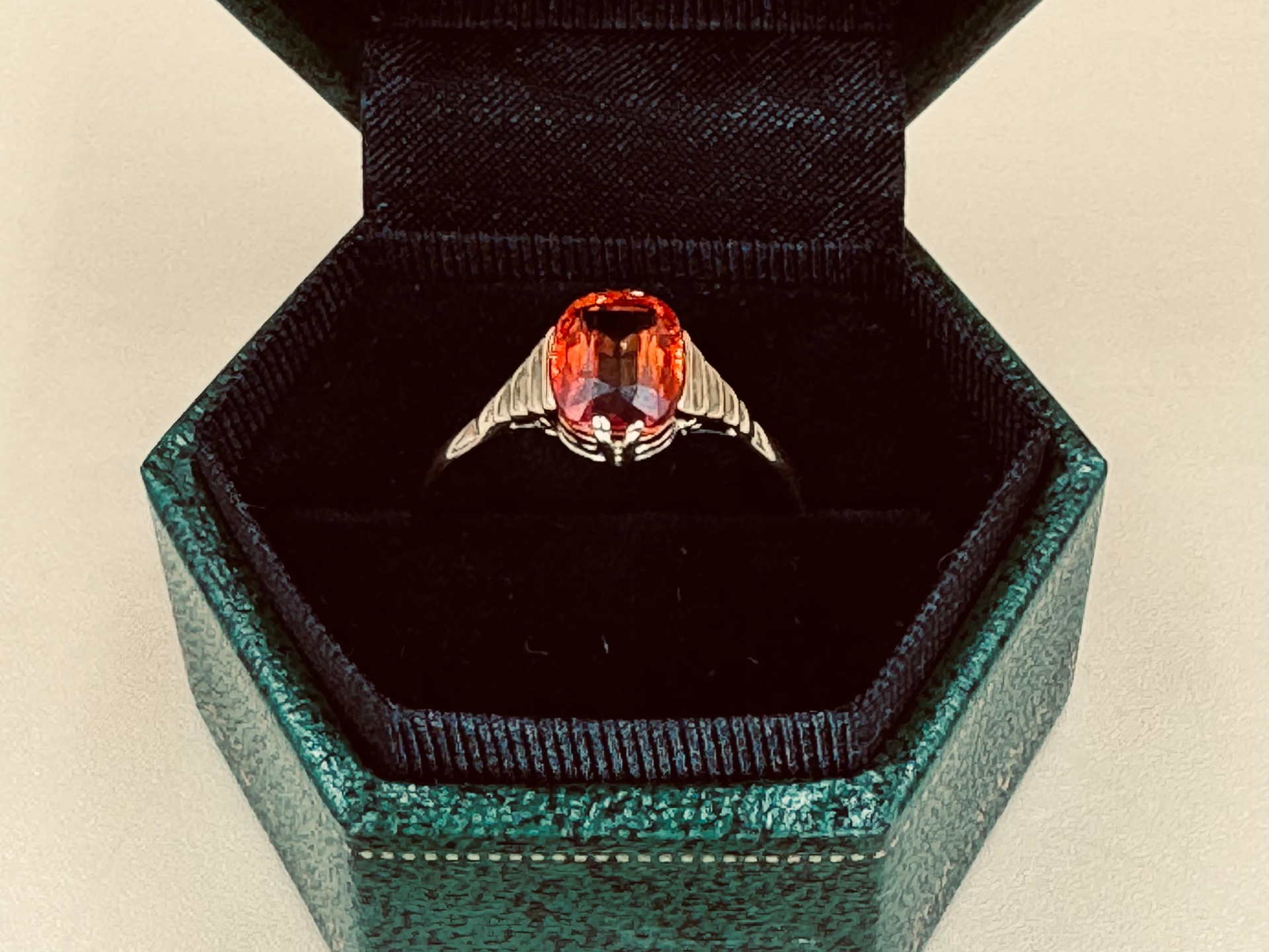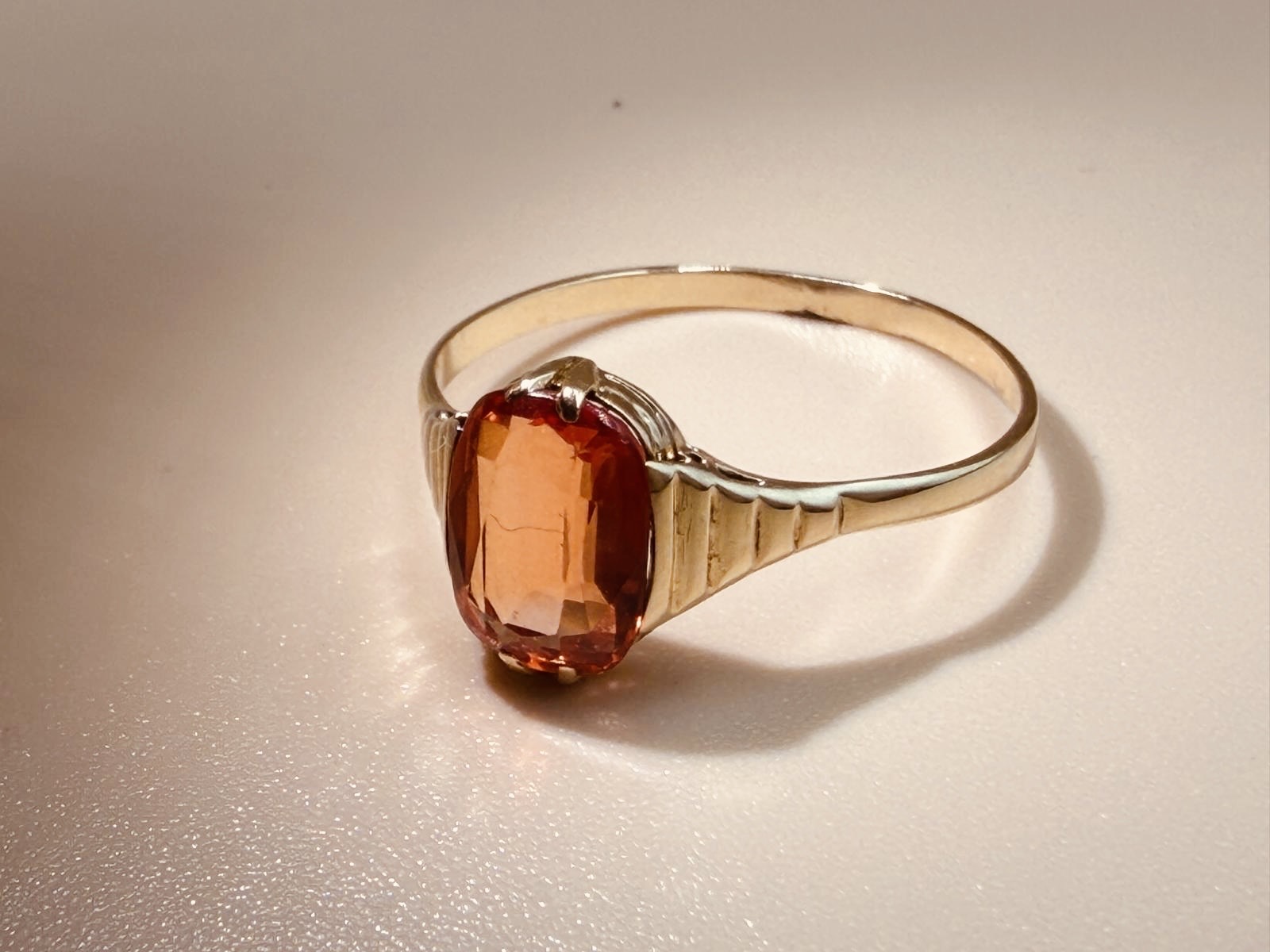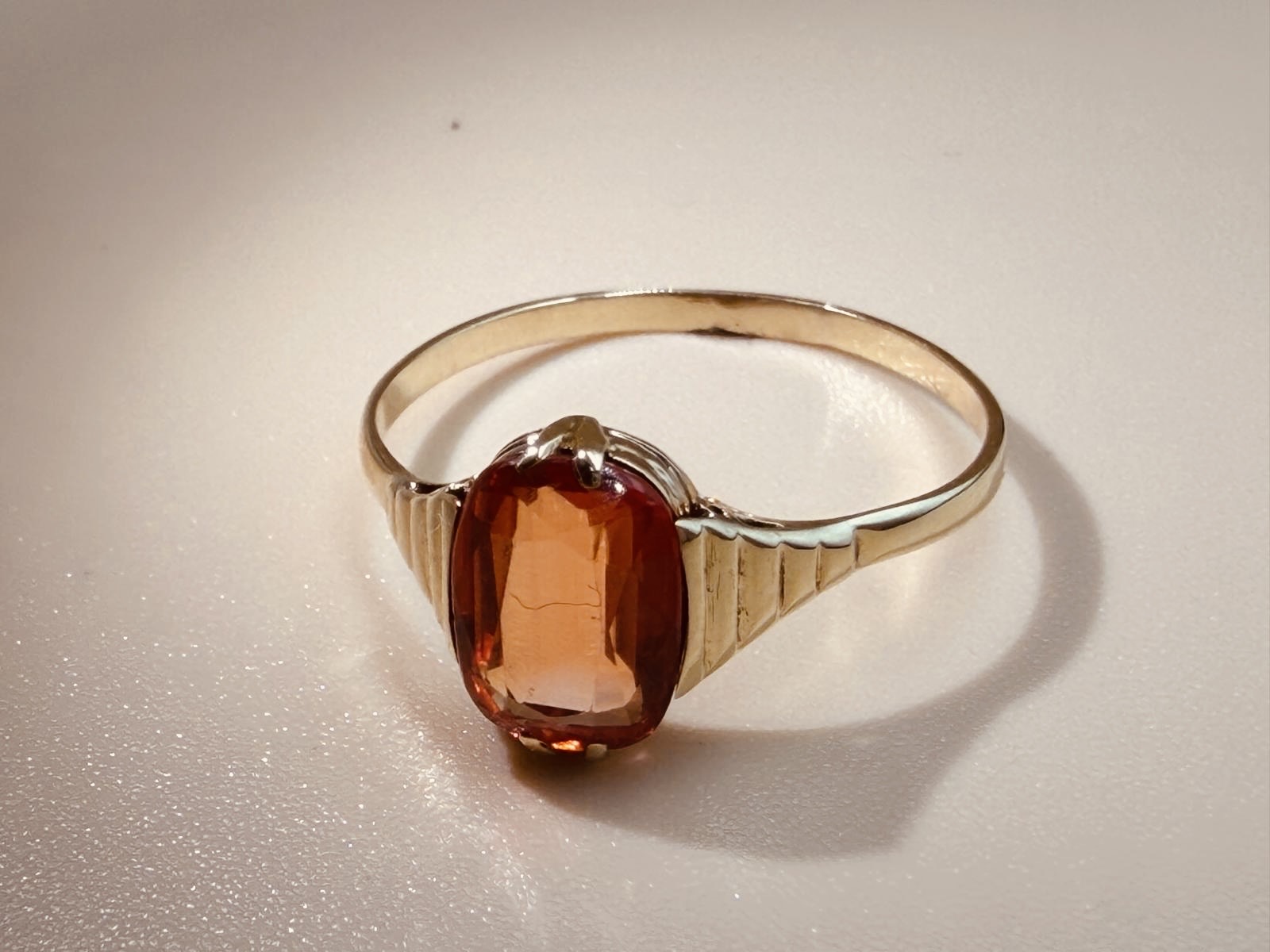 Prachtige 14 karaat gouden ring met mandarijn granaat. De details op de zetting maken de ring speels en chique tegelijk. De zetting is niet mega hoog, dus heel fijn draagbaar.