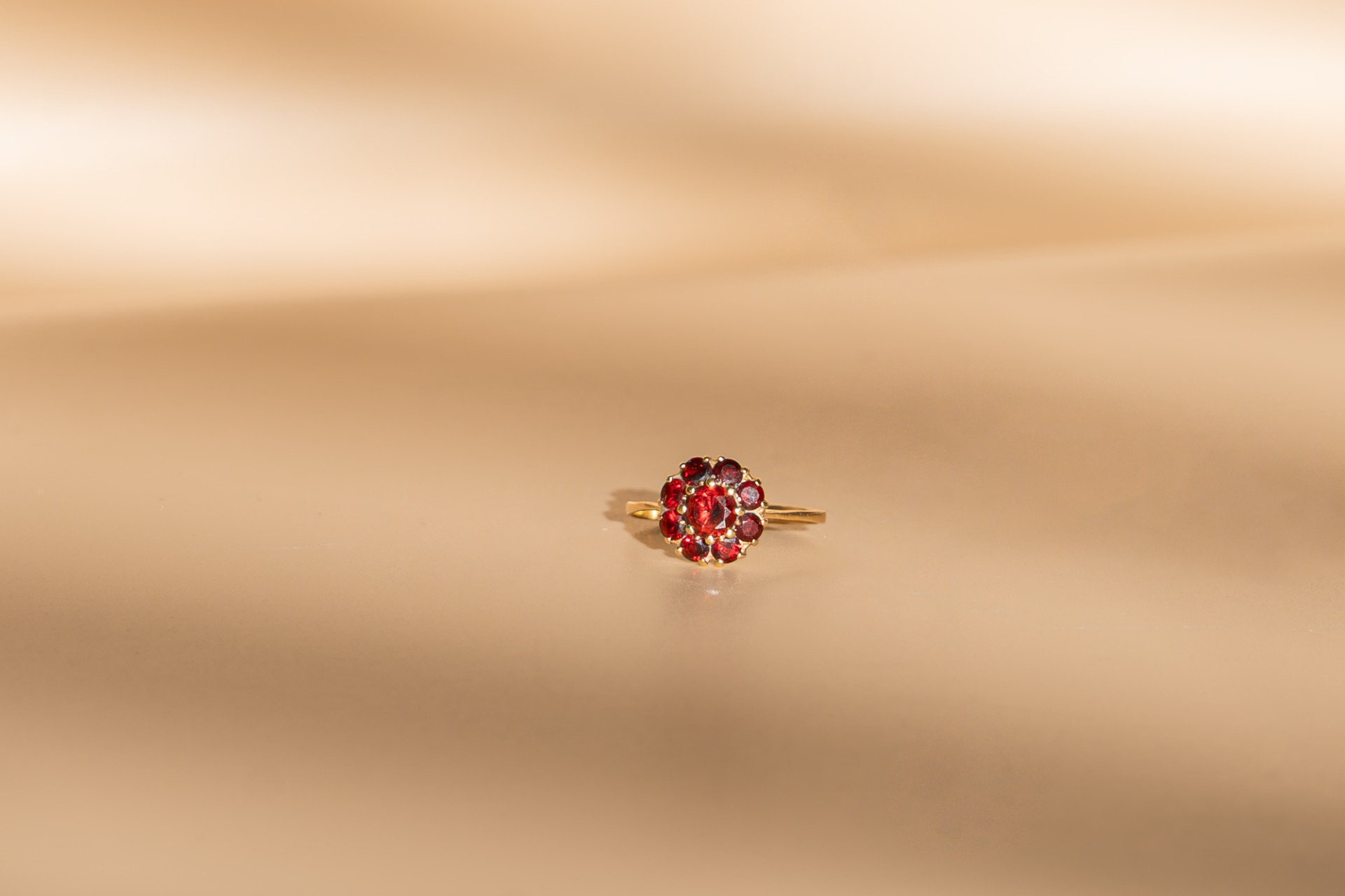 18 karaat cluster ring met granaat