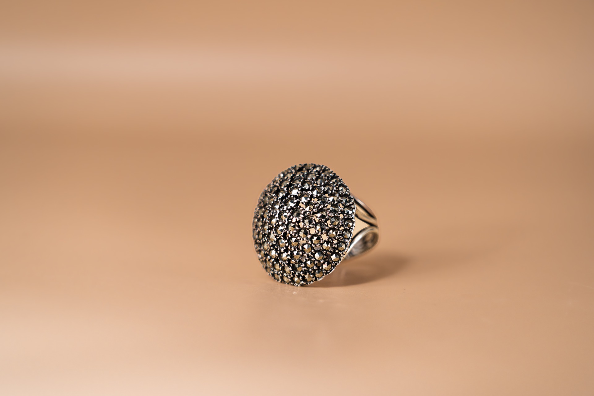 Deze prachtige vintage zilveren ring is super vrouwelijk, door zijn ronde vormen en de sparkle van de zetting vol markasietjes.