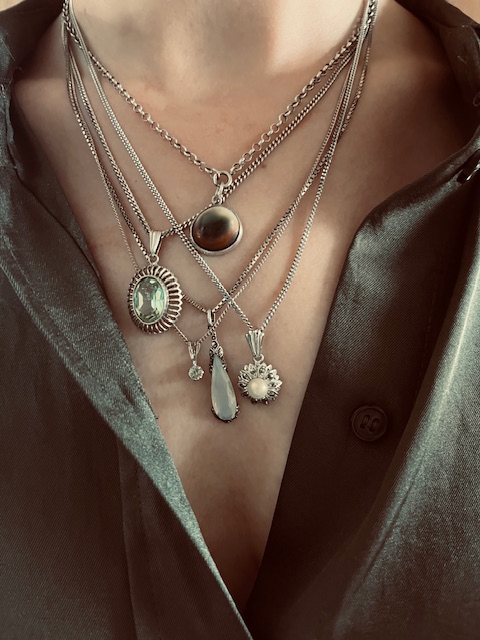 Zilveren ketting met prachtige hanger gezet met rozenkwarts en markasiet.